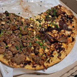 It's very different crispy corn crust pizza. Sauce and toppings are very good. We had sausage and pepperoni toppings. It came right out of oven and smelled really good